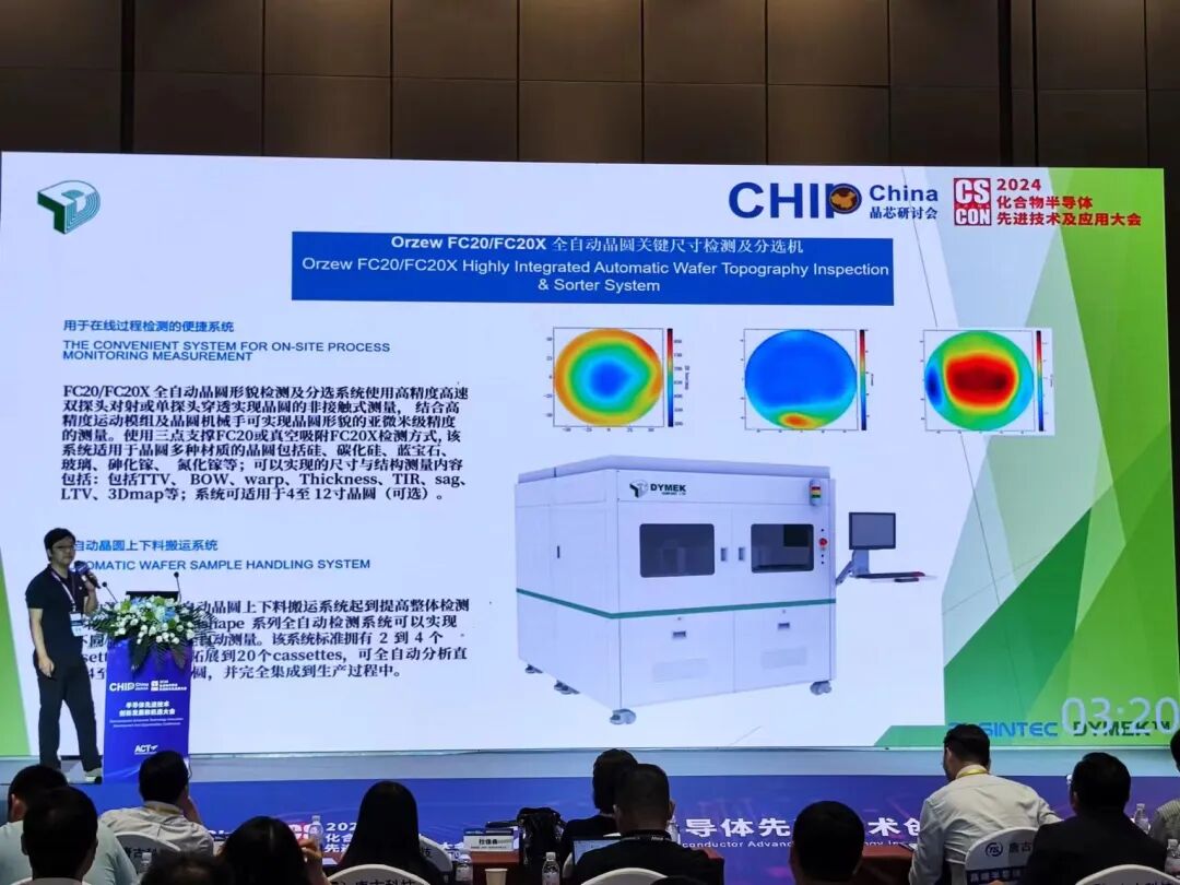 Following this, Mr. Du Jialiang focused on wafer critical dimension inspection and sorting technology. He provided a detailed introduction to the Orzew FC20/FC20X fully automated inspection system, a result of joint development between Dymek and Presiss. Mr. Du demonstrated the system’s significant advantages in enhancing inspection efficiency and accuracy, as well as how it ensures comprehensive control over wafer quality.