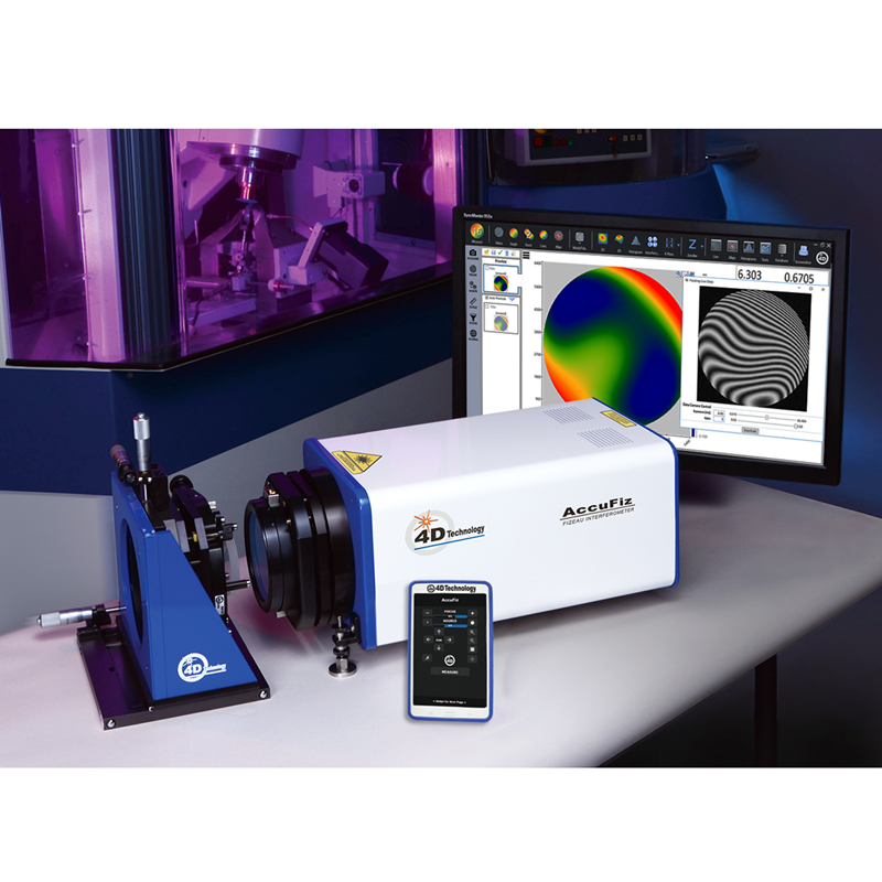 Order AccuFiz Fizeau interferometers in standard wavelengths from 532 nm through 1.55 µm, with custom wavelengths available. The standard product has apertures from 33 mm to 600 mm and can be mounted horizontally or vertically. 4D’s mature line of product offerings and accessories provides the right options for a wide range of applications and budgets.